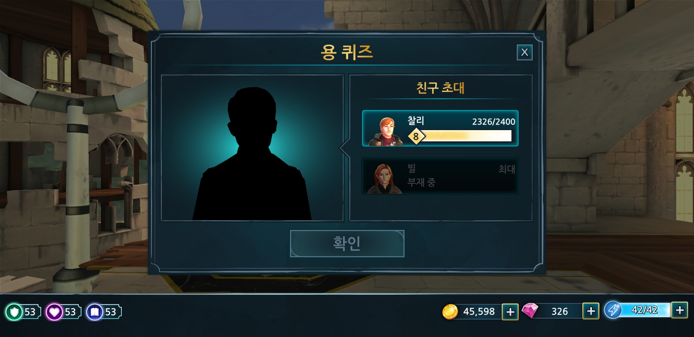 내 계정은 이미 6학년이라 빌은 호그와트를 졸업하고 나가서